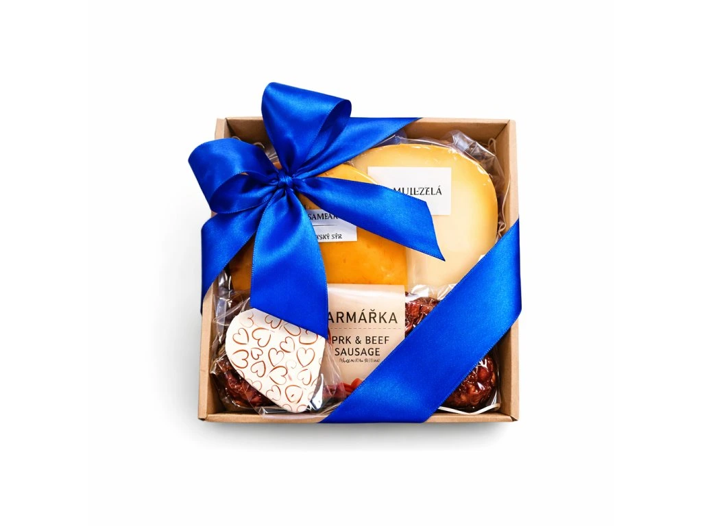 Malý dárek, který potěší každého muže, který má rád poctivé dobroty a něco dobrého na zobnutí. V krabičce najdete výběr dvou oblíbených sýrů typu gouda, které doplňují výběrové klobásy z uzenářství Kazda a malé čokoládové srdíčko od Janka. Ideální malý jedlý dárek pro muže, když nechcete přinést láhev, ale něco opravdu dobrého.